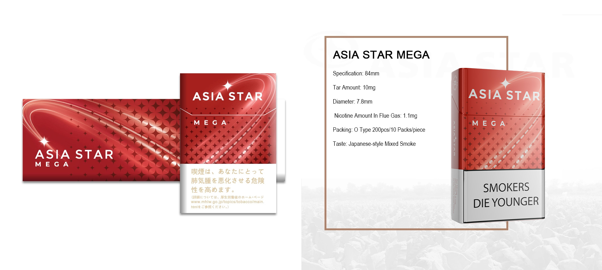 Asia Star (MEGA) offers an original flavor enhanced with a Charcoal Filter, while Asia Star (PRIME) presents a lighter flavor, also featuring a Charcoal Filter. Additionally, Power Tobacco has introduced two new variants in recent years, Asia Star (SHINE), infused with Apple Menthol Flavor, catering to local preferences and elevating the product with a touch of Japanese inspiration and style.